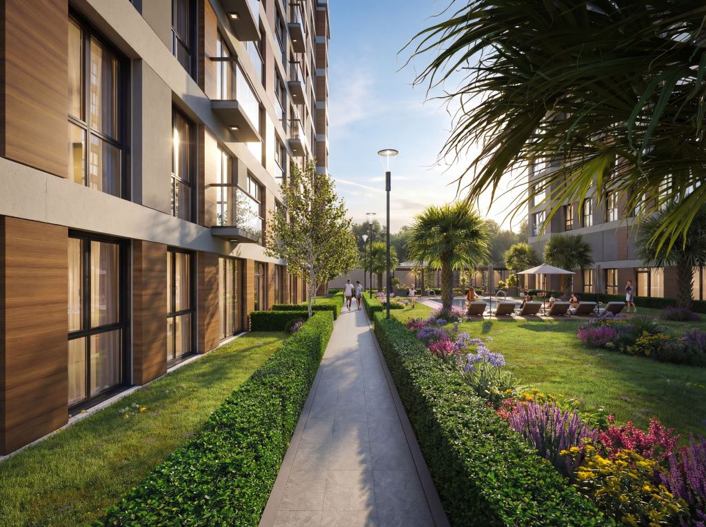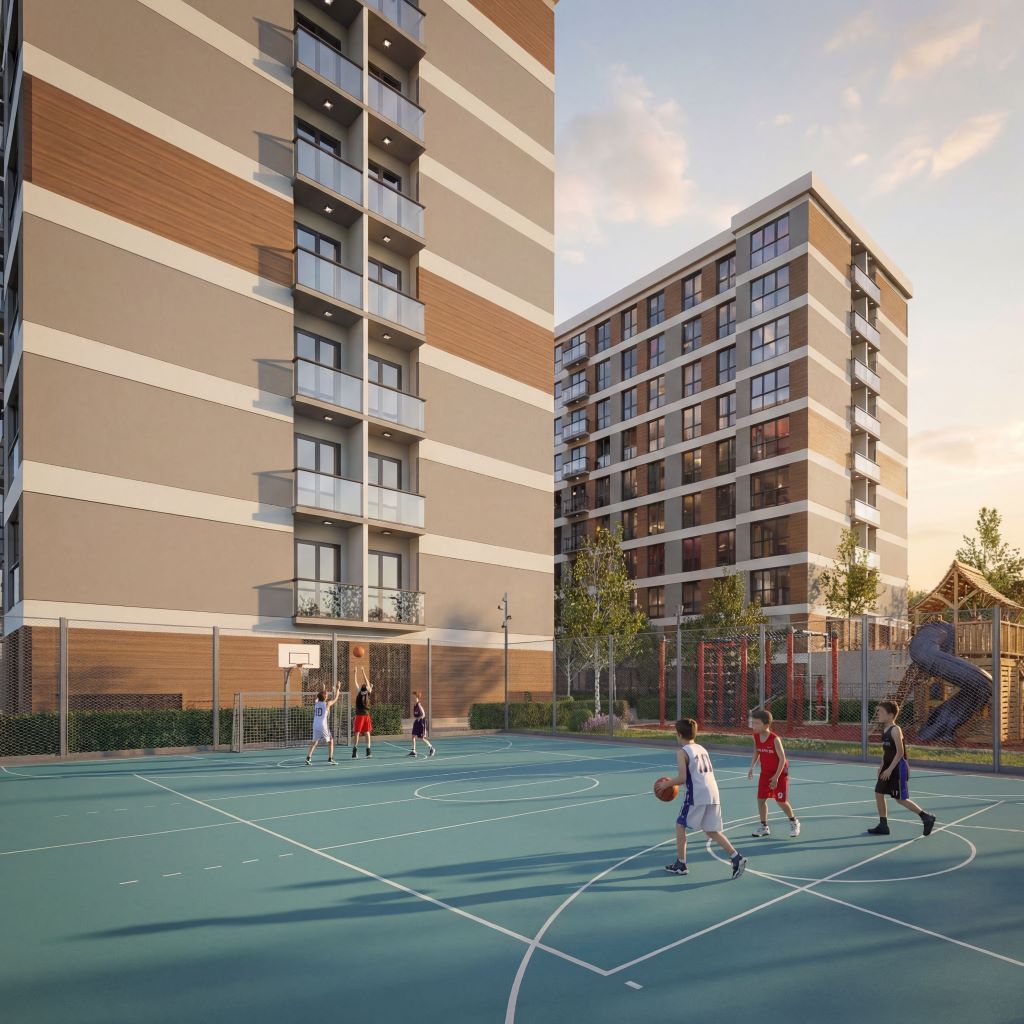 Çocuk oyun parkı, basketbol sahası ve peyzajlı oturma alanlarıyla her yaş grubuna hitap eden sosyal yaşam alanları sunulur.
