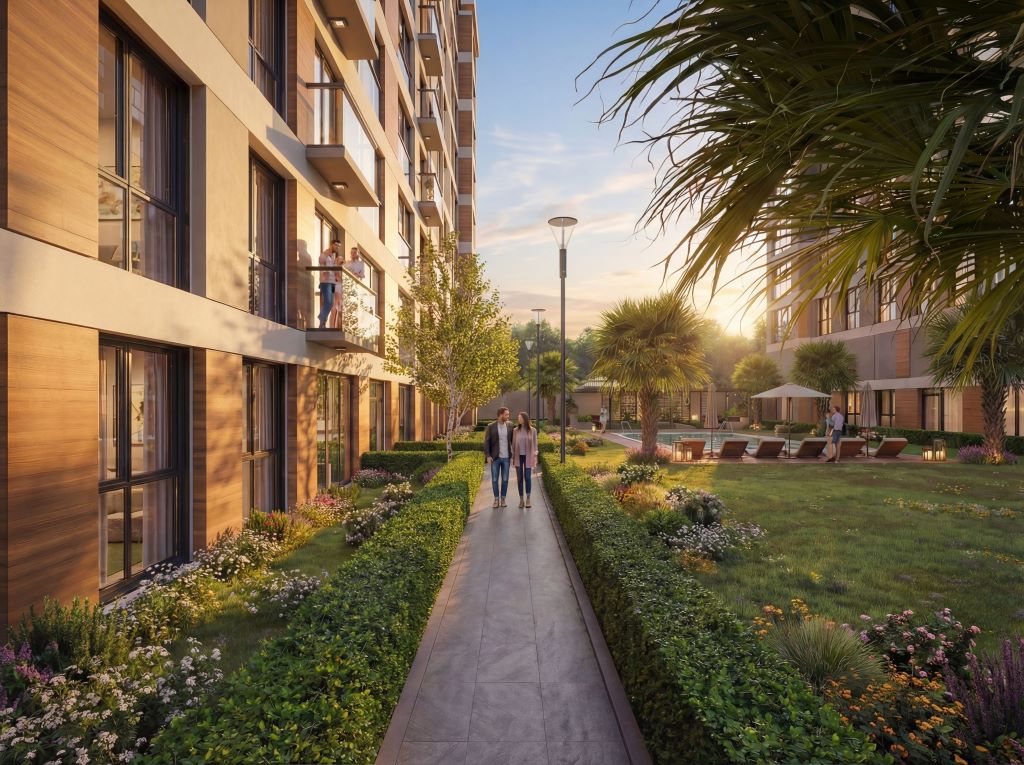 7/24 güvenlik hizmeti ve kamera sistemleriyle desteklenen site yaşamı, kontrollü ve huzurlu bir ortam sunar.