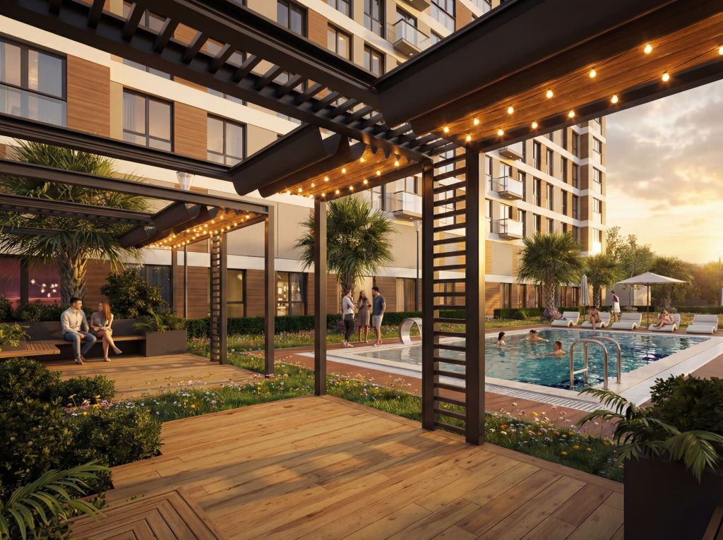 Projede yer alan açık yüzme havuzu, fitness salonu ve sauna, sakinlerin sağlıklı ve aktif bir yaşam sürmesine imkân tanırken; kamelyalar, oturma alanları ve peyzaj düzenlemeleri günün yorgunluğunu atabilecekleri ferah sosyal alanlar sunuyor. Çocuk oyun parkı ve basketbol sahası ise her yaş grubuna hitap eden dengeli bir yaşam kurgusunun parçası olarak projede yer alıyor.